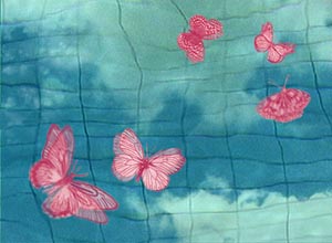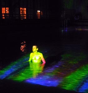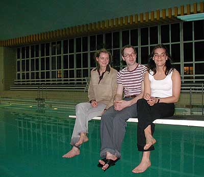 Verflüssigung der BilderLiquid Images zeigten beim Kultur-Rausch in der Kieler Schwimmhalle am Lessingplatz Film-Clips auf, im und unter Wasser.Über und in die Wellen wogen Bilder eines überdimensionierten Auges, das Wärme-Bild einer Frau in der Infrarotkamera, Schmetterlinge, die zu Fröschen und Quallen mutieren, und animierter Zahlentext als Metapher für das digitale Zeitalter der Daten- und Bilderströme, in die man buchstäblich eintauchen kann. Liquid Images heißt das Projekt von Friederike Rückert, Ina Pirk (beide Studentinnen an der Kieler Muthesius-Hochschule) und der Optischen Bank des Video-Diskjockeys Michael Carstens, das am 11. und 12. März in der Schwimmhalle am Lessing-Platz realisiert wurde. Wasser als Projektions- und gleichsam Auflösungsfläche für animierte Bilder hat Ina Pirk in ihrer Diplomarbeit Die Stille thematisiert (Präsentation am 10. April im ehemaligen Edeka-Supermarkt am Kieler Dreiecksplatz). Das abstrakte Zeichen durch Animation und Projektion auf bewegte Flächen zum Leben zu erwecken ist Pirks Ansinnen in ihren Videoinstallationen. Bereits bei der Artgenda 2000 in Helsinki hat sie dabei mit Friederike Rückert zusammengearbeitet. Auf einen im Wasser schwimmenden Multimedia-Cubus projizierten die beiden damals unter anderem Bilder von Heringen. Während Pirk mit digitalen Animationen arbeitet, fügt Rückert den Liquid Images ein natürliches Element hinzu, animierte Zeichnungen aus und nach der Natur, namentlich Schmetterlinge, Frösche, Blumen und Korallen, die sich auf der Fläche von Wasser, Wiese, Himmel metamorphotisch in- und auseinander verwandeln. Es war mir wichtig, als Kontrast zur Arbeit vor Bildschirmen etwas mit der Hand Gemachtes, etwas Organisches, die Zeichnung einzuarbeiten, beschreibt Rückert ihren Beitrag zu Liquid Images. Ihr Kurzfilmprojekt Ophelia, das die Kulturelle Filmförderung S.-H. fördert, setzt sich ebenfalls mit der Opposition zwischen Natur und kultureller Formung der Zeichen und Rollen auseinander, indem es die Kategorien Wasser, Tod und Weiblichkeit bildhaft verbindet beziehungsweise in Kontrast setzt. verflüssigen die Bilder - Ina Pirk, Michael Carstens und Friederike Rückert Auf den experimentellen Charakter des Augenblicks setzen die drei Künstler bei der Live-Performance in der Lessing-Halle, deren ganz eigenes architektonisches Ambiente aus den 30er Jahren nicht unerheblich zur Schaffung eines Bilder-Raums beiträgt und darin nicht zuletzt zurück zu sich kommt. Die Projektion auf vor die sieben Fenster gehängte Opera-Folien macht den Bilderraum auch im städtischen Umfeld außerhalb der Schwimmhalle erfahrbar. Das Wasser spiegelt die Bilder an die Decke der Halle und eröffnet so eine weitere Projektionsfläche, die vom in den Bildern schwimmenden Publikum und seinen Schattenwürfen interaktiv beeinflusst wird. |
