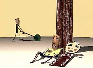 Let it be me beim International Festival of Cinema and Technology 2002Der 3-D computeranimierte Kurzfilm Let it be me von Krzysztof Tuszynski wurde beim International Festival of Cinema and Technology 2002 in Toronto/Kanada (IFOCT - www.ifoct.com) angenommen. Der Film entstand mit Untertützung der Filmwerkstatt der Kulturellen Filmförderung S.-H. In einer eigentümlich flachen Papierwelt leben ein fleißiger Arbeiter und ein verspielter Junge, die nicht all zu viel gemeinsam haben außer der Zuneigung zu einer sehr zurückhaltenden Dame. Am Ende gilt: Wer dem anderen eine Grube gräbt, lacht am besten. |