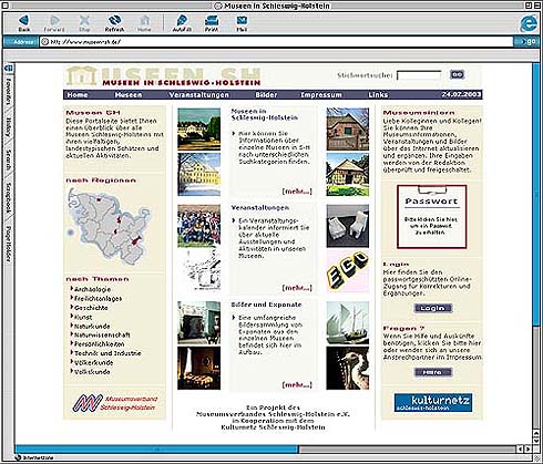Auf dem Weg in die Informationsgesellschaft darf auch die schleswig-holsteinische Kultur nicht ins Abseits geraten. So wurde schon Anfang 1999 in Zusammenarbeit von Museumsamt Schleswig-Holstein, des Museumsverbands Schleswig-Holstein und der Technologietransferzentrale (TTZ) ein Portal der schleswig-holsteinischen Museen auf dem Schleswig-Holstein Server eingerichtet. Dieses Portal wurde seither vom Museumsverband gepflegt und weiterentwickelt.