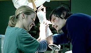 Verletzt und zärtlich: Bernadette Heerwagen undStipe Erceg in Der Typ Das Dasein ist schwierig in diesen Zeiten, weil es so sehr da, aber doch so wenig hier ist. Das teilen uns diese Filme mit, auf amüsante, zuweilen bärbeißige Art. Kino, das Freude macht am Leiden in den finsteren Zeiten des Großstadtindianer-Seins. (jm) |