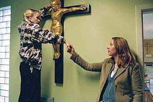 Annette K. Olesen (Kleine Missgeschicke) spielt virtuos mit diesen Fragen ihrer Figuren und mit der grundsätzlichen Verstrickung des Menschen in Schuld, Sündenfall und Erlösung. Die Erlösung kann aus der Sünde folgen und umgekehrt. Nicht nur die Welt, auch die göttliche Ordnung ist aus den Fugen. Olesen hat den Film mit zahlreichen mythologischen und biblischen Zitaten gespickt. Wir begegnen Pyramus und Thisbe, die durch einen Spalt in der Wand miteinander sprechen (Anna und ihr Mann Frank), der Medea-Mythos tritt immer wieder versteckt auf den Plan und nicht zuletzt die Opposition zwischen Altem und Neuem Testament, zwischen dem unerbittlich (aber damit auch berechenbar) strafenden Gott und dem liebevoll vergebenden. Auch solche Zitate sind ungewöhnlich für einen Dogma-Film, überwinden die Kühle des dokumentarischen Blicks in die Seelenabgründe.