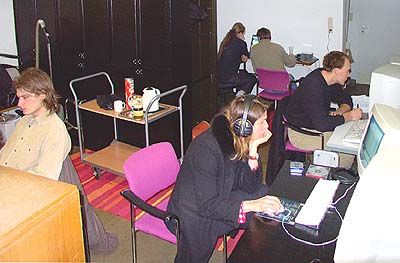 Schweigen, Klicken, Lüftersurren: Animationsworkshop der Kulturellen Filmförderung S.-H. (Foto: Lorenz Müller) Auch wenn wenn hier keine Bleistift- und Radiergummispäne fallen, wenn kein Papier raschelt und keine Folien bepinselt werden: Die Mühe der Zeichenarbeit bleibt. Freund Computer ist ein hilfreicher Geselle, der sofort den mehr oder weniger gelungenen Fluss der Bilder präsentiert, ohne banges Warten auf die teuren Muster aus dem Kopierwerk. Dann stellen sich die eigentümlichen Fragen, die zum Kern der Trickfilmarbeit führen: Warum watschelt das nicht richtig?, Wieso zappelt das nur und schwabbelt nicht? Wieviel Bilder brauche ich für einen Schritt? Gerade Einsteiger können sich mit Hilfe des Computers bedenkenlos und entspannt der Technik des trial and error hingeben und so kostbare Erfahrungen sammeln. |
