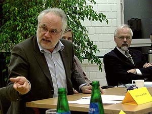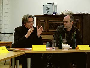 Filmemacher und Medienpädagoge Ulrich Selle (rechts) beim Referat