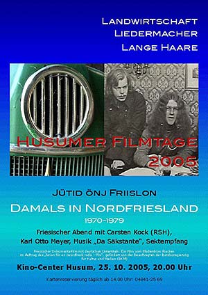 Jütid önj Friislon Damals in Nordfriesland, 1970-1979 läuft bei den Husumer FilmtagenLandwirtschaft, Liedermacher und lange Haare sind spontane Gedanken, die viele mit Nordfriesland der 70er Jahre verbinden. Sprache, Bewusstsein und Lebensgefühl stehen im Mittelpunkt dieses friesischen Dokumentarfilms mit deutschen Untertiteln vom Medienbüro Riecken, der altes Film- und Fotomaterial mit Interviews verbindet.