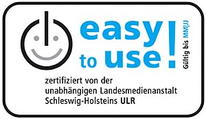 Weltpremiere in Schleswig-Holstein: ULR verleiht erstes Gütesiegel für Gute GebrauchstauglichkeitDie ULR hat am 15.12. in Kiel das erste Gütesiegel für Gute Gebrauchstauglichkeit für TV-Digitaldekoder verliehen. Zertifiziert und mit dem Prädikat easy to use! ausgezeichnet wurde der Satelliten-Digitaldekoder HUMAX F2-FOX des international tätigen Herstellers Humax Digital GmbH. Dieser Dekodertyp hatte in einer unabhängigen Prüfung durch die Forschungsgruppe Industrieanthropologie (FIA), Universität Kiel, alle 52 Prüfkriterien eines von der FIA im Auftrag der ULR entwickelten Qualitäts- und Zertifizierungskonzepts erfüllt und damit seine besondere Nutzerfreundlichkeit unter Beweis gestellt.