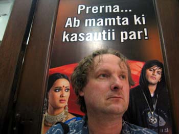 Nicht nur Bill Gates kam nach Bombay, auch ein Filmheld aus good old Europe Im Goethe-Institut versuchten wir zumindest im Ansatz etwas von dem Flair unserer Veranstaltungen mit Plakaten und dem Aufbau einer Super8-Installationen zu verbreiten, was in dem schicken klimatisierten Saal nur mäßig gelang. Ein sehr offizieller Charakter der Veranstaltung ergab sich auch daraus, dass Aditya Seth, der Vorsitzende des indischen Dokumentarfilmverbands, die Einleitungsrede zu unserem Programm hielt. Das Publikum setzte sich (mit Ausnahme einiger Deutscher) aus Leuten aus der Filmbranche zusammen.
