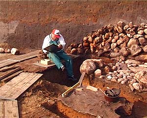 FilmTrain 2004-2006Archäologen über die Schulter geschaut„So süüt dat ut, Ausgrabungen in Hüsby” (Hilke Elisabeth Saggau, D 2005)Auf den ersten Blick unterscheidet sich eine archäologische Ausgrabung nicht unbedingt von einer gewöhnlichen Tiefbaustelle. Schaufeln und Schubkarren, Bagger und Vermessungsgeräte sind immer vor Ort, wenn große Mengen Erdreich zu bewegen sind. Die körperliche Arbeit bleibt, denn Granitbrocken werden nicht leichter, nur weil sie von einem bronzezeitlichen Grab stammen. Und wenn es regnet, wartet man im Bauwagen mit Butterbrot und Thermosflasche auf besseres Wetter. Eine Mischung aus bodenständiger Handwerkstradition und akademischem Forschergeist prägt die spezielle Atmosphäre auf einer Ausgrabung, wo sich Fortschritte oft nur in zermürbender Langsamkeit vollziehen. Nicht ohne Grund wird die Archäologie auch die „Wissenschaft des Spatens” genannt.