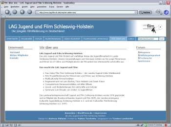 Neue Homepage der LAG Jugend und FilmDie Homepage der LAG Jugend und Film Schleswig-Holstein ist pünktlich zum Highlight des Jahres, dem Video-Film-Fest, welches vom 24. bis 25.11.2006 stattfindet, relauncht worden. Übersichtlicher, komfortabler, aktueller präsentiert sich der neue Webauftritt. Neu dazugekommen ist ein Diskussions-Forum, in dem sich die jungen Filmemacher über Seminare, Filme, Technik und alles mögliche andere austauschen können.