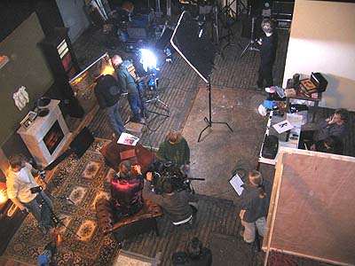 Kameramann und Regisseur Claus Oppermann (l.) gibt Jürgen Prediger (r.) als Anwalt noch einige Anweisungen, bevor die Kamera läuft. Aus dem Off wird später die Stimme von Franz-Josef Steffens (Schauspieler, Synchron- und Hörspielsprecher) ertönen, der vor seinem Tod im Mai 2006 bereits den Erzählertext eingesprochen hatte. Da es in dem Film viele Spezialeffekte, wie beispielsweise animierte Bewegungen von Rauchzeichen, zu sehen gibt und somit das Drehen auf 35mm-Film zu teuer und aufwendig geworden wäre, erwies sich das Drehen auf dem Format Pro35 als zündende Idee. Claus Oppermann, der auch für Bildgestaltung und Schnitt verantwortlich ist, erklärte: „Wir haben mit einer Digi-Beta-Kamera(25p) gedreht. Auf diese habe ich einen Adapter gesetzt, mit dem man 35 mm-Optiken verwenden kann. So können wir unser Material gleich auf eine Festplatte überspielen, die Spezialeffekte einarbeiten und auf ein Negativ ausbelichten.“ Nach der Bearbeitung werden die Bilder dann wieder auf ein 35 mm-Positiv kopiert.