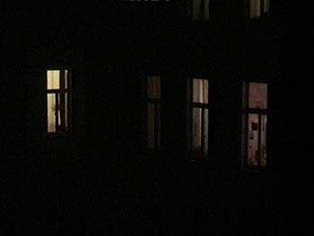 Doch „erzählen“ wir zunächst, was zu sehen und zu hören ist: Zimmer filmte mit der Hi8-Handkamera Fenster in der nächtlichen Nachbarschaft seiner Berliner Wohnung. Menschen sind darin nicht zu sehen, doch lässt die „wohnliche“ Beleuchtung erahnen, dass Menschen hinter den Fenstern zugegen sind, leben, wohnen und seufzen. Den auf 4,5 Minuten Filmlänge recht rasch wechselnden Fensterbildern unterlegt Zimmer (getreu dem Found-Footage-Prinzip, das viele seiner Arbeiten als produktionsästhetisches Paradigma durchzieht) als Soundtrack so genannte „Foleys“, Geräusche, erzeugt von Geräuschemachern, aus diversen Hollywood-B-Movies. So hört man aus dem Off hinter den Fenstern unruhige Schritte, Seufzen, ein Türklingeln, dem niemand öffnet, eine klickende Telefonwählscheibe, ein Telefon, das niemand abhebt, ja zuweilen auch Dramatischeres wie Scherbenfall, Schüsse oder einen Faustschlag.