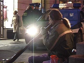 Hinter Warschau lernt Phil die polnische Variante des Didgeridoos, die Ligawa, sowie andere traditionelle Hirteninstrumente kennen und fürchten. Hier sieht er sich einer starken Konkurrenz osteuropäischer Musiker gegenüber ... Doch ganz am Ende fließt der Wodka, und es wird getanzt! Na zdrowie! „From Kiel to east of Warsaw" (Von Kiel bis hinter Warschau), D 2008, 58 Min., OmU, Produktion: Moses Merkle, Elisabeth Saggau. Mit Phil Conyngham. Premiere am Mittwoch, 16.4.2008, 20.30 Uhr im Kommunalen Kino Kiel. Anschließend Gespräch und Musik. |