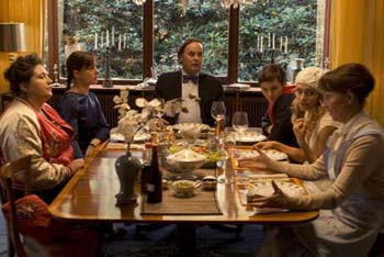Liebe auf den zweieinhalbten Blick: Monika und Robert in der Reinigung Das ist schon wundersam, aber nicht unbedingt nachvollziehbar. Es geht dabei nicht unbedingt um die Liebe, sondern eher um Roberts Werben, mehr sogar noch um seine Lebensumstände, in die Monika so gar nicht passt. Klar ist sie eine attraktive Frau, die sich anfangs eher belustigt und erstaunt Roberts ausdauerndem Balzen erwehrt. Aber als Zuschauer muss man Roberts Gefühle eher als vom Drehbuch gesetzt akzeptieren, als dass man seine Emotionen nachempfinden kann. Kaum gibt es Momente im Film, in denen es zwischen dem ungleichen Paar knistert, kein Feuerwerk der Emotionen, eher ein beständiges Schmachten und Wollen vom Game Designer, dessen frischer Charme die alleinstehende Mutter allmählich aus ihrer Reserve lockt. Seine Stärken hat der Film somit nur teilweise in der Erzählung des Auf und Ab des Liebeswerbens und -erhörens, auch wenn die Story sympathisch verspielt und locker daherkommt. Qualitäten zeigt Haußmann in der liebvoll ironischen, parodistisch köstlich überzogenen Darstellung von Roberts Patchwork-Familie. Jeder versucht dort, aus der biederen Angepasstheit einer deutschen Mittelstandsfamilie auszubrechen und überzieht dabei maßlos zur Freude des Publikums. Beim traditionellen Sonntagsbraten in trauter Runde wird dann mit Regelverstößen aufgetrumpft. Vater (Adam Oest), der stramm auf die 60 zugeht, hat sich eine junge groupiehafte Blondine zugelegt, Mutter (Marlen Diekhoff) bringt sich zum Trost darüber von ihrer Japanreise einen knackigen Asiaten mit, und Roberts lesbische Schwester Pia (Annika Kuhl) gefährdet die Beziehungen zur ihrer übergewichtigen, rustikalen Partnerin Marga (Bettina Stucky), weil sie sich künstlich befruchten hat lassen. Da fällt Roberts Eröffnung über seine neue Liebe zu der wesentlich älteren Monika kaum noch auf. Zumal das Familiendrama schön unterfüttert wird mit komischen Gags von den Dreharbeiten, die gleichzeitig in der elterlichen Villa stattfinden. Vater Zimmermann hat das Haus nämlich als Set für Dreharbeiten zu einem öden Geschichtsfilm von Heinz Fritör über das Werden der jungen Bundesrepublik in der 50er Jahren mit den Protagonisten Adenauer und Erhard vermietet.