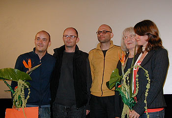 Die Jury gerahmt von den Preisträgern (v.l.: Bartosz Werner, Kai Zimmer, Jörg Wagner, Gudrun Wassermann, Irma-Kinga Stelmach) (Fotos: jm) Der Filmpreis Augenweide 2007 geht an „Preußisch Gangstar“ von Irma-Inga Stelmach und Bartosz Werner. Begründung der Jury: „Preußisch Gangstar“ von Irma-Kinga Stelmach und Bartosz Werner beschreibt das Doppelleben einer Jugendgang im brandenburgischen Buckow, ihren Umgang miteinander und gleichzeitig die Anbindung der Jugendlichen an ihr familiäres Umfeld.