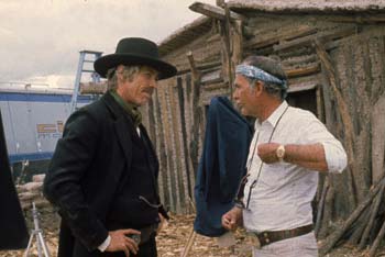 Regisseur Sam Peckinpah beim Dreh und mit James Coburn (unten) (Fotos: Pressematerial)