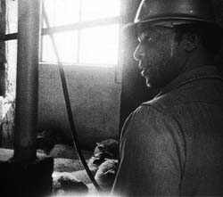 Henry Gayle Sanders in „Killer of Sheep“ (Foto: Milestone Films) Sorgsam kadrierte Dialogszenen mischte Charles Burnett mit quasi-dokumentarischen Aufnahmen spielender Ghetto-Kids. Es gelingt ihm, die Atmosphäre und den Alltag in der Community einzufangen. Viele Szenen wirken improvisiert, doch Burnett versicherte im Gespräch, dass sie bis auf wenige Ausnahmen im Script festgelegt und in einem Storyboard vor Drehbeginn visualisiert wurden. Die Darsteller sind meist Laien, was zum authentischen, unverfälschten Charakter des Films beiträgt. Dokumentarisch sind die Montageszenen im Schlachthof, Darsteller Henry Gayle Sanders (Stan), führte alle Arbeiten bis auf das tatsächliche Töten der Tiere selbst aus. Die Bilder erinnern fast zwangsläufig an Georges Franjus „Le Sang des bêtes“ (1949), einer Dokumentation über die Pariser Schlachthöfe. Man wird daran erinnert, das die Grundkonstanten menschlicher Bedürfnisse und ihre industrielle Befriedigung sich nicht ändern, egal zu welcher Zeit und in welchem Teil der Erde. Die Namensgebende Schlachtung der Tiere ist aber auch Symbol für den Umgang mit der Arbeiterklasse schlechthin. Unterstrichen wird die besondere Situation der afro-amerikanischen „working poor“ durch Burnetts Musikwahl an dieser Stelle: „What’s America for me?“ tönt es aus William Grant Stills „Afro-American Symphony“. Man ist erstaunt, welche unglaubliche Reife Charles Burnetts Debutfilm ausstrahlt. Wenn er als Vorbilder und Inspiration u. a. Jean Renoirs „The Southerner“ (1945) nennt, so ist das nicht im geringsten vermessen, man ahnt zudem Einflüsse des italienischen Neo-Realismus. „Killer Of Sheep“ hat eine berührende, humanistische Qualität und ist zudem dank seiner authentischen Darstellung und Inszenierung ein Zeitdokument. Nach einer Aufführung auf der Berlinale im Jahre 1981 war der Film in Europa nicht und in den USA nur selten und auf schlechten 16 mm Kopien zu sehen. Einer regulären Veröffentlichung standen die nicht geklärten, teuren Musikrechte des sorgfältig zusammengestellten Soundtracks im Weg. 1990 wurde der Film von der Library of Congress zum „National Treasure“ ernannt, 2002 wurde er von National Society of Film Critics zu einem der „100 Essential Films“ gewählt. Auf der diesjährigen Berlinale konnte „Killer Of Sheep“ in einer frisch restaurierten, vom UCLA Television and Film Archive finanzierten 35 mm Fassung bestaunt werden. Die Musikrechte wurde geklärt, einer Veröffentlichung steht nichts mehr im Weg. Der um filmisch wertvolle Raritäten bemühte New Yorker Arthouse Verleih „Milestone“ wird den Film dankenswerter Weise in diesem Frühjahr auf DVD publizieren. (dakro) Killer Of Sheep, USA 1977, 83 Min., 35 mm (Blow Up von 16 mm), Buch, Regie, Kamera, Schnitt, Produktion: Charles Burnett, Ton: Charles Bracy, Darsteller: Henry Gayle Sanders, Kaycee Moore, Charles Bracy, Angela Burnett, u.a. Charles Burnetts Filme bei Milestone: www.milestonefilms.com |