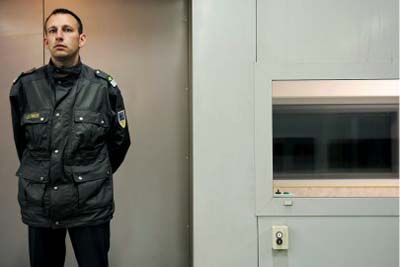 „Täter“ wird zum Erzähler: Der Grenzbeamte Rainer Hallbauer (Fotos (c): Amour Fou) Natürlich sind solche Geschichtenerzähler nicht die wirklichen Täter, nur solche, die aufgrund ihres Berufes oder ihrer Funktion zu Mittätern werden könnten. Die Geschichten der ausgebeuteten und/oder zur Prostitution gezwungenen Frauen werden durch die Verfremdung entindividualisiert, denn es sind exemplarische Geschichten, die immer ähnlich ablaufen. Ebenso sind die „Täter“ typisierte, denen die jeweils wirklich an den entsprechenden Positionen arbeitenden Laiendarsteller in Salomonowitz’ Inszenierung nicht ihre Persönlichkeit, sondern nur ihre mögliche Funktion im Repressionsapparat leihen. Einfühlung und Identifikation werden wie im Brechtschen Theater sowohl bei den Darstellern als auch den Zuschauern bewusst unterlaufen. Dokument und Fiktion kommen in ein dialektisches Verhältnis, weil jede Fiktion dokumentarische Wurzeln hat und jedes Dokument ein Stück weit immer Fiktion ist.