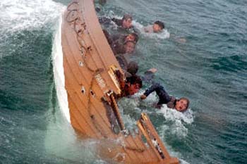 48. Nordische Filmtage LübeckLänglicher Untergang„Der Untergang der Pamir“ (Kaspar Heidelbach, Deutschland 2006)Viel Wasser fließt nicht nur die Elbe hinunter, sondern auch durch den Film-Wassertank auf Malta, um den „Untergang der Pamir“ standesgemäß windig und nass zu inszenieren. Kaspar Heidelbach hat, wie er bereits 2003 mit dem „Wunder von Lengede“ bewies, ein glückliches Händchen für Katastrophen, die nicht spektakulär, sondern länglich daherkommen. Wer sich bei der Spielfilm-Variante der Schiffskatastrophe, die sich am 21. September 1957 im Hurrikan „Carrie“ in der Nähe der Azoren ereignete, dramatische Action erwartet, wird enttäuscht. Drei Stunden dauerte der Todeskampf der Pamir, bevor sie kenterte und sank, drei Stunden dauert zusammengenommen auch Heidelbachs Zweiteiler. Ein Untergang in Echtzeit sozusagen, der jedoch nicht durch die gute halbe Stunde, die wir mit den fünf Überlebenden in Rettungsboot Nr. 4 bangen, quälend lang wirkt, sondern durch die vielen unnötigen Szenen und Erzählstränge.