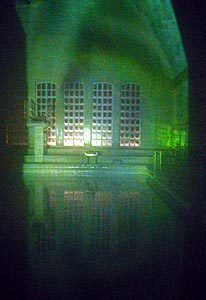 Verflüssigung der BilderLiquid Images zeigten beim Kultur-Rausch in der Kieler Schwimmhalle am Lessingplatz Film-Clips auf, im und unter Wasser.Über und in die Wellen wogen Bilder eines überdimensionierten Auges, das Wärme-Bild einer Frau in der Infrarotkamera, Schmetterlinge, die zu Fröschen und Quallen mutieren, und animierter Zahlentext als Metapher für das digitale Zeitalter der Daten- und Bilderströme, in die man buchstäblich eintauchen kann. Liquid Images heißt das Projekt von Friederike Rückert, Ina Pirk (beide Studentinnen an der Kieler Muthesius-Hochschule) und der Optischen Bank des Video-Diskjockeys Michael Carstens, das am 11. und 12. März in der Schwimmhalle am Lessing-Platz realisiert wurde.![]() ![]() ![]() ![]() (v.l.n.r. - Fotos: jm)Auf den experimentellen Charakter des Augenblicks setzen die drei Künstler bei der Live-Performance in der Lessing-Halle, deren ganz eigenes architektonisches Ambiente aus den 30er Jahren nicht unerheblich zur Schaffung eines Bilder-Raums beiträgt und darin nicht zuletzt zurück zu sich kommt. Die Projektion auf vor die sieben Fenster gehängte Opera-Folien macht den Bilderraum auch im städtischen Umfeld außerhalb der Schwimmhalle erfahrbar. Das Wasser spiegelt die Bilder an die Decke der Halle und eröffnet so eine weitere Projektionsfläche, die vom in den Bildern schwimmenden Publikum und seinen Schattenwürfen interaktiv beeinflusst wird.Lobend erwähnt das Bilder in liquide Stürme aus Pixeln verwandelnde Trio die kongeniale Kooperation mit dem Team der Schwimmhalle. Sollte sich das Konzept bewähren, plant man Fortsetzungen solcher Animationen mit in Bildern badendem Publikum als regelmäßiges Event in der Lessing-Halle. (jm)zurück zum Inhalt |