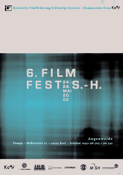 6. Filmfest Schleswig-Holstein - AugenweideDie Kulturelle Filmförderung S.-H. e.V. und das Kommunale Kino Kiel präsentieren das 6. Filmfest Schleswig-Holstein - Augenweide vom 24. bis 26. Mai in der Kieler Pumpe (Haßstr. 22, Saal) und laden alle Schleswig-Holsteiner, Nachbarn, Filmschaffende und Freunde zu einem langen Filmwochende nach Kiel ein. Genießen Sie mit uns ein breites Programm von Filmen aus Schleswig-Holstein und der weiten Welt, treffen Sie die Filmschaffenden in der Pumpe und feiern Sie mit uns an der Kieler Förde.Hier eine Programmübersicht (die mit * gekennzeichneten Filme nehmen am Wettbewerb um den Publikumspreis teil):![]() Freitag, 24. Mai 2002, 19.30 Uhr Eröffnung des 6. Filmfests S.-H.
