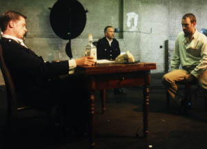 Kieler Filmfrühling 2003Filmabend der Film/Video-AG im Studentenwerk Schleswig-Holstein am 29. April 2003, 20 Uhr im Sechseckbau des StudentenwerksDie traditionelle Veranstaltung der Studentischen Arbeitsgemeinschaften der CAU Kiel möchte das Publikum wieder mit einem neuen Programm aus Kamera-/Regieübungen, charmanten Erstlingswerken und Kurzspielfilmen begeistern.Zu sehen gibt es u.a. Beziehungskonflikte (Frauengespräche an der Wand), Lebensweisheiten (Liebe macht blöd), Experimentelles (Tunnelblick, Crosscut), Trickreiches (Masquerade), einen feuchten (amerikanischen) Traum (-U-), eine Nacht in der Oper (Der Dolch) und ein politisches Familiendrama (Protokoll einer Entscheidung).Premiere von Protokoll einer EntscheidungDer 20-minütige Kurzfilm Protokoll einer Entscheidung (Buch, Regie: Thomas Plöger, frei nach dem Kurzdrama One For The Road von Harold Pinter), der im Rahmen der Medienwerkstatt im Studentenwerk Schleswig-Holstein produziert wurde, feiert beim Kieler Filmfrühling seine Premiere.Zum Inhalt: Irgendwann, irgendwo. Polizeichef Frederick (Mathias Harrebye Brandt) wird, um seine Linientreue zu beweisen, von den politischen Machthabern eines totalitären Regimes, für das er arbeitet, gezwungen, ein Mitglied seiner Familie zum Tode zu verurteilen. Unter den Augen des Gefängniswärters Karl werden Frederick nacheinander sein Bruder Robert (Tom Keller), dessen Frau Marie und beider Sohn Nickolas zum Verhör vorgeführt. In den Verhören brechen alte Wunden auf - die unterschiedlichen Beziehungen der Brüder zum Vater, Fredericks Liebe zu Marie. Und am Ende steht Fredericks Entscheidung.![]() |
