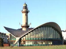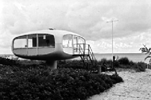 "Teepott" in Warnemünde - einer von Müthers BautenMargarete Fuchs hat in ihrem Dokumentarfilm die Veteranen und Improvisationskünstler des Betonschalenbaus aufgesucht und porträtiert. Sie schreiten durch die verfallenden oder sporadisch reanimierten Bauten mit dem immer noch fachmännischen Blick, erkennen sich wieder in zittrigen Super-8- oder 16mm-Schwarzweiß-Streifen, wie sie auf Stahlgerüsten balancieren und in Verschalungsmeisterwerken der Gravitation trotzen, als sei die Überwindung gesellschaftlicher Schwerkraft nur eine Sache richtig organisierten Klassenkampfs.