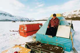 Archen / Arken von Karin Karlsson und Mita Moberg (S 2004, 13 Min., 35 mm) zeigt eine seltsame Siedlung hoch im Norden Schwedens, 250 km jenseits des Polarkreises. Auf dem Eis eines Sees haben Angler über den Löchern, in die sie ihre Angeln hängen, wohnliche Häuschen errichtet, mit Herd, Heizung und sogar Fernseher. Solches Containercamping ist zweifellos Frucht eines Spleens, ist aber auch die Gestalt gewordene Ruhe und Beschaulichkeit bei der meditativen Tätigkeit des Angelns. So unerhört ist dieses Kleinod, dass Karlsson un Moberg eigentlich nur die Kamera drauf halten müssen, um beim Zuschauer Schmunzeln auszulösen - bis hinein in die Sauna, die auch nicht im Eis-Camp fehlt.