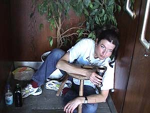 Keine Paternoster auf den Lofoten - Ein DrehberichtDer 6,5-minütige Kurzfilm Keine Paternoster auf den Lofoten des Kielers Mins Minssen wurde vor Kurzem mit Unterstützung der Filmwerkstatt S.-H. fertiggestellt. Wir dokumentieren hier einen Drehbericht des Autors Mins Minssen.HandlungDas Fährschiff aus Norwegen kommt. Auf diesem Schiff wäre Thomas (Holger Wetzel), angestellt in einer Behörde, gerne Barpianist. Im Hochhaus der Behörde dreht sich der Paternoster. In einer der Kabinen sitzt Thomas mit einem Jazzpiano-Buch. Das Schiff bringt eine junge Norwegerin mit: Kirsti von der Inselgruppe der Lofoten (Christine Fröhling). Kirsti hat eine Leidenschaft: Paternoster Fahren. So trifft sie auf Thomas. Bei sich zuhause spielt er ihr auf dem Klavier vor. Sie fährt ab, und er bleibt da. ![]() Geplant war ein ziemlich anderer Film, und zwar einer über die verschiedenen Mechaniken, bewegt zu werden und das damit verbundene Zeitgefühl. Erste Szene: Am Rande der Autobahn steht die Kamera. Autos rasen auf sie zu und - dschoiiing, dschoiiing - vorbei.Zweite Szene: Menschen auf der Rolltreppe: Man sieht nur die Füße bei diesem zögerlichen Schritt oder forschem Sprung, je nach Alter und Gelenkigkeit, am Ende der Rolltreppe. - Ich hatte einmal einen Schweizer Künstler kennen gelernt, der sich als Stadttänzer bezeichnete. Er hieß Walter Siegfried und ahmte mit Studentengruppen zur Irritation der Passanten stadttypische Bewegungen nach: Wie von einem Uhrwerk aufgezogen losgehen an der Ampel bei Grün oder eben der leicht riskante Schritt von der fahrenden Rolltreppe auf den ruhenden Boden. Man hätte hier auf dem Film lauter bewegte Beine vom Knie etwa abwärts gesehen. Im Nachhinein erinnere ich mich, dass ein Hitchcock-Film so anfängt. Die Kamera ist auf den Boden gerichtet, und man sieht eiliges Kommen und Gehen von Schuhen.Dritte Szene: Am Paternoster: Beim Paternoster ist das Risiko beim Betreten und Verlassen noch ein bisschen fühlbarer als bei der Rolltreppe. Man sieht das, wenn in unserem Film Thomas einsteigt und einen Fuß hinterher zieht. Andererseits ist das Bewegtwerden, ist man erst mal drin, bedächtig und auch vorhersehbar. Ein Aufzug dagegen ist schneller, aber auch launischer und uneinsehbarer. Man weiß, nicht wann er kommt oder ob er kommt. Es könnte ihn jemand festgehalten haben. Von der Rolltreppenidee ist nur die kurze Szene übrig geblieben, in der Kirsti im Fährterminal die Rolltreppe hinunterfährt.In Kiel kenne ich vier Gebäude mit Paternoster: Das Rathaus, das Landeshaus, das HOWE-Haus (Kleiner Kuhberg) und das Kultusministerium an der Brunswiker Straße. Ich habe mich für das Kultusministerium entschieden. Da ist es ruhig, es läuft einem so bald keiner ins Bild. Außerdem gibt es direkt neben dem Paternoster einen Aufzug. Diese Anordnung bot sich für folgende Handlung an: Eine Angestellte wartet am Aufzug und drückt immer wieder den Knopf. Über dem Aufzug befindet sich tatsächlich eine Uhr, an der sich die Wartezeit ablesen ließe, aber der eigentliche Zeitmesser ist der Paternoster. Während die Angestellte auf den Aufzug wartet, kommt mehrmals dieselbe Kabine des Paternosters ins Bild. Dass es dieselbe Kabine ist, kann man aber nur an einer Person sehen, die darin rundherum fährt, ohne je auszusteigen, denn die Kabinen sind sich untereinander so ähnlich wie Herr und Frau Igel in der Fabel von ihrem Wettlauf mit dem Hasen. Die Person in der Kabine benutzt den Paternoster nicht, um von einem Stockwerk ins andere zu kommen, sondern fährt mit ihm Karussell zum bloßen Vergnügen. Es muss eine Person sein, für die ein Paternoster etwas ganz Seltenes und Außergewöhnliches ist. Diese Person ist Kirsti. Sie ist ein Paternoster-Fan, so wie es Straßenbahn-Fans gibt. Kirsti lebt auf den Lofoten, die für Abgeschiedenheit stehen. Dort gibt es keine Paternoster. Als Paternoster-Expertin weiß Kirsti aber, dass es in Kiel solche Beförderungsmittel gibt. Vielleicht gibt es Paternoster-Fan-Magazine oder entsprechende Internetseiten. Da stehen auch Adressen drin. Kirsti braucht nur einen Stadtplan von Kiel. Den findet sie am Kiosk der Fähre von Kiel nach Oslo, wie man im Film sieht. Auf Grund des kleinen Budgets sehen wir keine Außenaufnahmen von den Lofoten, wo Kirsti irgendwann dem Melkschemel einen Fußtritt geben würde mit dem Ruf: Ich will hinaus in die Welt und etwas erleben: Paternoster Fahren im schleswig-holsteinischen Kultusministerium. Die Lofoten sind repräsentiert durch Bild und Schriftzug auf Kirstis T-Shirt und Lofoten-Bild und -Inschrift auf einem Andenken-Teller am Kiosk des Fährschiffs. Als Alibi, um der immer noch fadenscheinigen Existenz von Kirsti von den Lofoten etwas Handfestes zu verleihen, brauchte ich die Festmacher, Helden der Arbeit, von unten gegen den Himmel aufgenommen wie Denkmäler. Wo zwei solche Kerle sich in Bewegung setzen, da ist Wirklichkeit. Ein merkwürdiger Augenblick ist das Festmachen. Da kommt so ein Schiffs-Koloss, und dann fliegen zunächst die dünnen Wurfleinen durch die Luft, und der Unkundige denkt, damit würde das Schiff festgemacht, so wie Gulliver von den Liliputanern mit vielen dünnen Stricken gefesselt wurde. Das hat wieder etwas Unwirkliches: Schiff mit Lasso eingefangen.Gut, ich hatte mir die Drehgenehmigungen für Schiff und Behörde besorgt. Der Dreh dauerte etwa einen halben Tag. Am Ende langen Wartens wendet sich die Angestellte (Astrid Burmeister-Bünder) vom Aufzug ab und steigt auch in den Paternoster ein. Die Moral ist deutlich: Stetige Langsamkeit besiegt sprunghafte Schnelligkeit. Der Aufzug ist der Hase, der Paternoster der Swinegel, der immer schon da ist. Außerdem ähnelt die Kabinenfolge des Paternosters einem Film, jede Kabine ein Bild, ein Frame. Der Blick aus der Kabine ist der Blick der Camera obscura. So fängt der Film an: Aus dem fahrenden Paternoster sieht die Kamera ins Gegenlicht eines Treppenhauses, in dem sich eine Figur als Schattenriss abzeichnet.Nach dem Dreh lud 