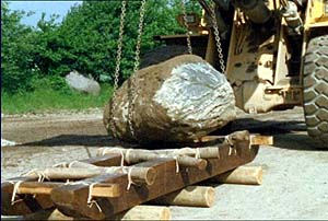 Aber man darf nicht nur Hände sehen, man muss auch den Menschen dahinter zeigen, beschreibt Denzer sein Drehbuchkonzept. Mit Schülern wurde der Megalith-Transport live im Freien nachgestellt, was der Film in seinem zweiten Teil zeigt und so die historische Technik mit- und nacherlebbar in Szene setzt.