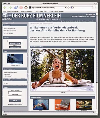 Innovationspreis für die KurzFilmAgentur HamburgDie KurzFilmAgentur Hamburg e.V. erhält für ihre Online-Verleihdatenbank den mit 25.000 Euro dotierten Innovationspreis 2005 der Bundesbeauftragten für Kultur und Medien. Dieser Preis wird jährlich für herausragende Innovationen auf dem Gebiet des Filmwesens vergeben.Die Datenbank der KurzFilmAgentur bietet seit Juni unter www.kurzfilmverleih.com allen Kurzfilminteressierten einen direkten Zugang zu Daten, Bildern und Filmausschnitten aus den über 300 Kurzfilmen des Verleihs der KFA. Kinobetreibern in Deutschland, Österreich und der Schweiz wird zusätzlich ein besonderer Bestellservice für ein optimal auf ihr Kino abgestimmtes Kurzfilmprogramm geboten. Die Preisverleihung durch Kulturstaatsministerin Christina Weiß fand am 3. November in der Hochschule für Film und Fernsehen in Potsdam statt. Dabei wurden insgesamt zwei Innovationspreise 2005 verliehen sowie die Preisträger des diesjährigen Deutschen Drehbuchpreises geehrt.JurybegründungDer Kurzfilm hat es derzeit schwer, sein Publikum zu erreichen; Kurzfilme sind kein Muss mehr im Kinobetrieb, wer sie zeigt, tut dies aus Leidenschaft. Die KurzFilmAgentur Hamburg e.V. sorgt seit 13 Jahren dafür, dass die Filme ihren Weg ins Kino finden, nun macht sie sich auf in ein neues Zeitalter: Sie hat den Zugriff auf die Filme ihres Verleihprogramms auf moderne Weise vereinfacht.Erstmals können Kinobetreiber und Filminteressierte Kurzfilme über eine Internet-Plattform aussuchen und buchen. Auf die Angabe einer tagesaktuellen Verfügbarkeit sowie alle wichtigen Details der Filme kann online zugegriffen werden. Eine gezielte Suche über Stichwörter ermöglicht so beispielsweise eine Zuordnung des Kurzfilms als Vorfilm zu einem entsprechenden Langfilm. Filmausschnitte vermitteln einen ersten Eindruck des Werkes und mittels passwortgeschützter Zugangsberechtigung können hochauflösende, druckfähige Fotos heruntergeladen und schließlich der Film bestellt werden.Neben der Bereitstellung eines effizienten Dienstleistungsangebots wird darüber hinaus auch der generelle Zugang zu Kurzfilmen, auch für die Öffentlichkeit, erleichtert. Außerdem ist die KurzFilmAgentur auf dem Weg, ihr Repertoire digitalisieren zu lassen auch das ist ein Stück Zukunft. Das Engagement und der Idealismus der KurzFilmAgentur Hamburg e.V. verschafft den Kurzfilmen neue und bessere Chancen für einen Platz in den Kinos.(nach einer Pressemitteilung der KurzFilmAgentur Hamburg e.V.)zurück zum Inhalt |