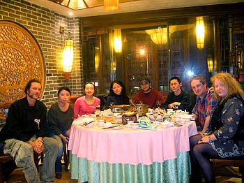 Im Flieger hatten wir Geschäftsleuten über die Schulter schauen können, wie sie entnervte Berichte über ihre Chinaerfahrungen in ihre Laptops tippten. Wir hatten uns darauf eingestellt, dass Absprachen etwas sehr Relatives in dem Land sind. Und am liebsten scheint man dort spontan und in letzter Minute zu entscheiden. Aber letztendlich hat immer alles auch geklappt, was versprochen worden war. Wir lernten auch die Hürden mit Bravour zu nehmen, an denen so manch westlicher Geschäftsmann gescheitert ist. Allen Aktivitäten geht ein großes Essen voraus, bei dem es darum geht herauszufinden, ob man einander mag und vertraut. Das beste Geschäftskonzept wird scheitern, wenn man beim Menü versagt. Da wir aber gehackte Schlange, Schweineohren, Hühnerfüße und Knorpelteller, ohne mit der Wimper zu zucken, mit Stäbchen aßen, sah man in uns die idealen Kooperationspartner. Das Essen scheint in dem offiziell atheistischen Land eine Ersatzreligion zu sein, und uns blieb der einmonatige Chinaaufenthalt als permanente Entdeckungsreise durch die erstaunliche Küche des Landes in Erinnerung. Unsere Nerven wurden schon strapaziert, als uns der Direktor des Filmdepartments der Kunstakademie und Professoren dann zum Essen einluden, als das Publikum bereits auf uns wartete. Das Publikum nahm es uns jedoch nicht übel und es wurde noch eine wirklich schöne Veranstaltung.