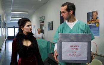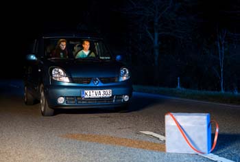 Vollkommen abgedreht Der Kurzfilm „Farbenblind“ von Oliver BoczekNach einer kurzen, aber intensiven Vorbereitungszeit, und einer dreitägigen Drehdauer ist der Kurzfilm mit dem Arbeitstitel „Farbenblind“ des Kieler Regisseurs Oliver Boczek im Kasten. Genauso schnell, aber mit nicht weniger Präzision, soll nun der Film auf eine Länge von sieben Minuten geschnitten werden. Dazu konnte der Bildgestalter und Cutter Torben Sachert gewonnen werden. Begonnen werden soll noch vor Weihnachten.Zwei Tage wurden auf der Schönberger Straße (K51) zwischen Brodersdorf und Lutterbek im Kreis Plön gedreht. Das 22-Personen-Team hatte sich schnell eingespielt und harmonierte gut miteinander. Niederschläge gab es lediglich durch das Wetter, welches an den Drehtagen für teilweise heftige Schauer sorgte. Das verwendete Auto musste bei jedem Regenguss abgedeckt und danach wieder trocken gerieben werden. Die PKW-Innenaufnahmen wurden zwar unter einer halboffenen Halle inszeniert, allerdings prasselte dann der Regen auf das Wellblechdach, was den Tonmeister Jörg von Rekowski beinahe zur Verzweiflung brachte. Die vielen Unterbrechungen sorgten dafür, dass bis nach Mitternacht gedreht werden musste.![]() Beate (Melanie Riebe) und Jan (Janos Hennicke) machen nachts auf einer einsamen Landstraße eine unheimliche Entdeckung mit ungeahnten Folgen ... (Fotos: Tim Albrecht) ![]() Noch schaut Beate neugierig. ![]() Beate provoziert ihren Freund.Am letzten Drehtag wurde ein Kieler Krankenhaus zur Kulisse. Hier wurden einige Szenen mit beweglicher Kamera inszeniert. Der für diese Bilder extra angereiste Berliner Steadicam-Operator Christian Mansmann kam dabei mächtig ins Schwitzen: Er musste nicht nur eine komplizierte Kamera-Bewegung durchführen, sondern gleichzeitig sechs Schauspieler, ein Krankenbett und den ziemlich engen Krankenhauskorridor im Auge behalten. Der zusätzliche Aufwand wurde durch wunderbare Bilder belohnt, die der hauptverantwortliche Kameramann Claus Oppermann in sein komplexes Gestaltungskonzept passend integrierte. ![]() Langsam begreifen Jan und Beate, was ihr Handeln ausgelöst hat im Hintergrund Tina Wagner als Krankenschwester und Neele Stuhr-Wulff als Patientin.Der Filmemacher Oliver Boczek konnte bei seiner zweiten Filmarbeit auf eine breite Unterstützung von Mitwirkenden vor und hinter der Kamera sowie der Filmwerkstatt Kiel, ohne die dieser eigenfinanzierte Film nicht zustande gekommen wäre, zurückgreifen.„Farbenblind“ (AT), Produktion, Drehbuch, Regie: Oliver Boczek, Bildgestaltung: Claus Oppermann, Kameraassistenz: Michael Uphoff, Steadicam-Operator: Christian Mansmann, Regieassistenz/Aufnahmeleitung: Alexandra Eck, Script/Continuity: Sabrina Bahr, Oberbeleuchter: Friedrich Stender, Tonmeister: Jörg von Rekowski, Szenenbild: Ulrike Brunner, Kostümbild: Nina Holzapfel, Maskenbild: Johanna Kriesel, Standfotograf: Tim Albrecht, Making of: Sven Bohde, Catering: Gisela Boczek, Sofia Strack und Volker Hartrampf, Produktionsfahrer: Achim BoczekDarsteller: Janos Hennicke, Melanie Riebe, Tina Wagner, Neele Stuhr-Wulff, Ingo Büchmann und Markus Nietschmann(nach einer Pressemitteilung von EinfallsReich Film)zurück zum Inhalt |