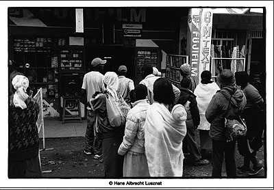 Joseph kommt uns immer wieder besuchen. Früher war er Fremdenführer in einem Safari Hotel. Er lädt uns ein, für Freitag um 12 Uhr. Eine konkrete Uhrzeit hier in Afrika empfinde auch ich nach zwei Wochen schon fast als Drohung. Da kann man nur pünktlich sein. Wir geraten in eine Verlobungsfeier. Seine Tochter wird verheiratet und der Clan des Bräutigams rückt mit 50 Personen, einer Kuh und Ziege an. Wir sind mitten drin, filmen und fotografieren. „Macht Fotos“ sagt Joseph, „deshalb seid ihr hier“, eine sehr tiefe philosophische Betrachtung oder die Bemerkung eines Schlitzohrs. Aber unsere Interessen sind deckungsgleich und Joseph bekommt seine Fotos. ![]() Gab es denn gar nichts Gutes, könne man nach der Lektüre meinen? Doch! Mir als Kameramann, das ist mein Metier, sind Bilder ungeheurer Intensität im Kopf geblieben, um so mehr sie an Gefühle anknüpfen, die ich zu den Menschen und zu der Landschaft entwickelt habe. Sollte ich eines Tages unvermittelt in Muhotetu auftauchen, ich bin mir gewiss wie ich es hier zu Lande nie sein könnte, alle würden sich freuen, ich wäre wieder Gast und keiner würde fragen, wie lange ich bleibe auch wenn es für immer wäre. Vielleicht habe ich das Paradies gesehen und die Spielregeln nicht verstanden, und verhaftet in der eigenen Herkunft - das haben wir immer so gemacht - nicht begriffen, dass es auch anders sein kann. Ich habe Wangechi wiedergesehen, in Deutschland, im Winter bei grauem Himmel, hier, wo es ihr besser gehen sollte, im gelobten Land und doch ahnt man in ihrem Blick, dass sie in ihren Träumen in Afrika weilt. Ein Projekt, dass ich gerne noch machen möchte: „Papa Wangechi kommt nach Deutschland“. [spätere Anmerkung der Redaktion: Es ist ein zweiter Film von Helmut Schulzeck mit Papa Wangehi entstanden - gedreht aber in Kenia -; er heißt "Meine ferne Familie" ("So Close And Yet So Far"), D 2011, 87 Min., Kamera: Hans Albrecht Lusznat] |