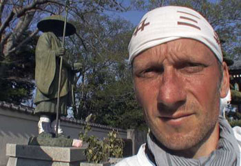 „88 – pilgern auf japanisch“ auf DVD erschienenGerald Kolls Dokumentarfilm „88 – pilgern auf japanisch“ über die Erfahrungen eines europäischen Pilgers auf dem japanischen Pilgerweg „hachijuhakkasho“ (D 2008, 88 Min., 16:9, Buch, Regie: Gerald Koll, gefördert u.a. von der Kulturellen Filmförderung S.-H.) ist am 26.5.2009 in der Edition Salzgeber auf DVD erschienen. ![]() Die DVD mit einigen Extras wie zusätzlichen Szenen und dem Kino-Trailer kann für 19,90 € (plus Versandkosten) im Online-Shop der Edition Salzgeber unter www.delicatessen.org/shop//index.php?aktion=artikel&id=112 bestellt werden. Ich bin dann auch mal weg! Keiner ist Pilger. Jeder wird dazu. Und zwar, indem er oder sie sich verkleidet. Kostüm, Textbuch und Regieanweisung verhindern, dass man aus der Rolle fällt. Schritt für Schritt wächst man in seine Pilgerrolle hinein. Länger und älter als der Jakobsweg, länger und älter als jeder markierte Pilgerweg der Erde, ist der Weg der 88 heiligen Stätten. Er umkreist die japanische Insel Shikoku. Dort pilgern Menschen seit zwölfhundert Jahren, entlang einer Route von 1.300 km, markiert durch 88 Tempel. Die Zahl gab dem Weg seinen Namen: hachijuhakkasho – die 88 heiligen Stätten. Wer hier geht, ist Japaner und Buddhist. Nur ganz selten mischt sich ein Ausländer darunter. Zum Beispiel im Frühjahr 2007. Da ging ein Deutscher mit, allein, begleitet von seiner Kamera. Er war auf der Suche nach „henro boke“, dem eigentümlichen Zustand des Pilgerns, den ihm eine Japanerin auf dem Jakobsweg prophezeit hatte. Er war allein und fand vieles: trommelnde Mönche, erwachende Schlangen, Schamanen, Sutren, Fremdheit im umfassenden Sinn des Wortes. ![]() Auf der Suche nach dem „henro boke“ – Gerald Koll in Japan (Foto: Koll)Wie fühlt man sich, wenn man erfährt, dass andere diesen unendlich langen Weg nicht nur einmal oder sieben Mal gepilgert sind, sondern 385 mal? Die Insel ist heilig und ein bisschen verrückt, vielleicht nicht nur ein bisschen. Vielleicht ist es der Pilger aus Deutschland auch geworden – und mit ihm seine Doku. Infos zum Film unter www.88-pilgern-auf-japanisch.de. (nach Pressematerial der Edition Salzgeber) |