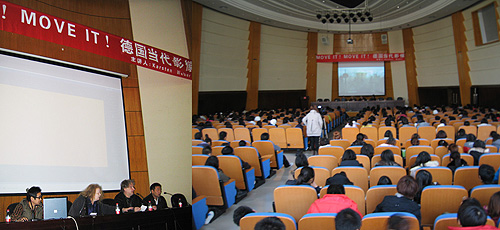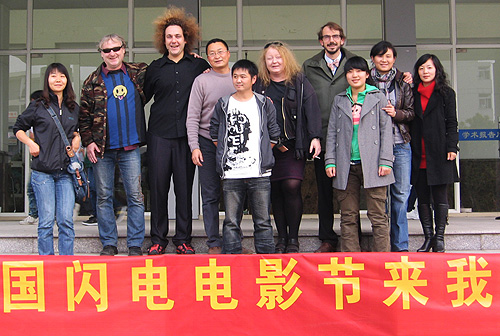 Bilderhunger, Boom und KonfusionBericht über ein deutsches Kurzfilmfestival in China![]() Crew: Willkommensgruß auf dem Banner (Fotos: Karsten Weber)Das Blitzfilm Festival wurde im 5. Jahr mit 28 Veranstaltungen in 15 Städten abgeschlossen, eine Tour de Force für die vierköpfige reisende Festivalcrew. Die Tour 2010 war der Erinnerung an die Wiege des deutschen Kinos gewidmet, das als Attraktion auf Jahrmärkten begann. Die ersten Filmvorführungen fanden nicht nur zwischen Marktschreiern und Magiern statt, die Filme selbst hatten Zauberei und Illusion zum Thema. So war es uns eine Freude den bekannten Entertainer und Zauberer Konrad Stöckel für das Festival gewonnen zu haben. Die Chinesen lieben die Zauberei, und so hat das staatliche Fernsehen erst kürzlich Zaubershows in das Programm aufgenommen. Wir konnten das Publikum gleich gewinnen und ihm dann auch, für chinesische Augen, schwere Kost anbieten. Es ging nicht allein darum, deutsche Kurzfilme im Reich der Mitte zu präsentieren, sondern es war ein Versuch, ein tieferes Verständnis der Werke aus einem anderen Kulturkreis zu ermöglichen. ![]() Der Magier Konrad StöckelChina, ein Land eines unglaublichen Wirtschaftsbooms, mit futuristisch anmutenden Städten voller Modeläden, Miniröcken und trendigen Frisuren. Man mag nicht glauben, dass das Verständnis von Filmen manchmal nur an einer leicht experimentellen oder ungewohnten Erzählweise scheitert. Unter der sehr modernen Oberfläche des Landes liegt eine wahrhaft andere Kultur. Unsere bisherige Chinaefahrung hatte Einfluss auf Programmauswahl und Präsentationsform. Es galt, sich flexibel an den jeweiligen Veranstaltungsort und dessen Publikum anzupassen. Über die Jahre sind wir immer weiter in die chinesische Kulturszene eingetaucht. Sowohl die staatlichen Institutionen als auch die freie Kunstszene bieten einen immer größeren Rahmen für deutsche Filmproduktionen und Hintergrundinformationen. Nach der langen Abschottung ist der Hunger nach neuen Bildern groß, gilt es, vieles nachzuholen. Einladungen kamen von Filminstitutionen bis zu großen Universitäten, vom Museum of Modern Art bis zur Hinterhofgalerie. Die Veranstaltungsorte reichten vom Dorfplatz bis zur Vorführung in der angesagtesten Galerie. Die Bedürfnisse sind ebenso verschieden. In staatlichen Einrichtungen war es nicht möglich, Filme mit pornografischem Inhalt zu zeigen, auch wenn es sich nur um Animationsfilme handelte. Einige Professoren bestanden darauf, sich just diese Filme in einem Privatscreening ansehen zu können. Die Kunstszene ist damit beschäftigt, ihre Möglichkeiten auszuloten, und im Moment ist es es en vogue, die Tabus der sexuellen Darstellung in der Kunst zu brechen. Wir kamen da wie gerufen, und alle Ankündigungen, es gebe etwas Skandalöses zu sehen, machten das Publikum nur noch neugieriger. ![]() Heiß auf Neues und SkandalösesDas Zusammentreffen europäischer mit konfuzianistischer Kultur verläuft nicht reibungsfrei und sorgt für lange Diskussionen. So bedeutet eine Reise aus dem krisengeschüttelten Europa in das Boomland einen Kulturschock: Die jungen Chinesen träumen den Traum vom ewigen Wachstum. Konsum und Karriere sind die dominierenden Wünsche der Studenten. Der Gedanke hinter Independent- und Undergroundfilmen wollte sich vielen nicht erschließen. Eine Arbeit ohne finanziellen Gewinn? Was soll denn das?! Wo man in anderen Ländern den Traum vom Fußballprofi oder Popstar träumt, ist es in China die Karriere in der Kunst. Und die Neureichen schmücken sich mit zeitgenössischer Kunst und mit Künstlern. Wir wurden in dieser Szene weitergereicht und trafen dort Intellektuelle, die die aktuellen Entwicklungen Chinas kritisch bis tief pessimistisch beurteilen. Das fortschreitende Auseinanderklaffen der Schere zwischen Arm und Reich ist auf Dauer kaum in den Griff zu bekommen. Derweil trifft man sich in schicken Galerien und privat finanzierten Museen. Die Reichen ziehen sich zurück in eigene Stadtteile, die durch Mauern, Überwachungskameras und Wachleute geschützt werden. Es hat sich im letzten Jahrzehnt auch eine unabhängige Filmszene außerhalb staatlicher Kontrolle entwickelt. Gerade Kunsthochschulen haben Interesse an den Entwicklungen des unabhängigen Films in Deutschland und den Wechselbeziehungen zwischen Mainstream und Underground. Wir hielten Vorlesungen zum Thema mit Filmbeispielen und konnten auf diverse Wünsche der Hochschulen und Studenten eingehen. Wir behandelten z.B. den Animationsfilm als separates Thema oder boten Workshops über Filmästhetik an. ![]() Move It! Vorlesung über TrickfilmUnd überall fanden wir Zuschauer, die die Geschichten und Anspielungen aus den deutschen Filmen auf ihr Leben beziehen konnten. Umweltzerstörung wurde von Zuschauern thematisiert, und sie schienen überrascht, solch ein Thema in lustigen Zeichentrickfilmen zu finden statt in Dokumentationen. Die Bilder von den Auseinandersetzungen um Stuttgart 21 bedurften keiner weiterer Erklärung: Pläne von Investoren, die von Politikern und Polizei gegen den Willen der Bevölkerung durchgesetzt werden, und den schmerzhaften Zusammenprall beider Interessengruppen kennt man in China zur Genüge. Man war überrascht, auf welchen Gebieten sich die Kulturen so wenig unterschieden. Der Übergang von einem sozialistischen System in den Turbokapitalismus hinterlässt Spuren. Wir erlebten die mehrheitlich atheistischen Chinesen sowieso als abergläubische Menschen, und in Zeiten des Umbruchs suchen viele ihren Halt in der Religion. Die religiöse Freiheit ist im Westen wenig bekannt. Der Staat reagiert nur dann rigoros, wenn Religionsgemeinschaften es wagen, den Staat zu kritisieren oder staatlicher Autorität Konkurrenz machen. Es gibt muslimische Regionen und Stadtteile, Moscheen, Kopftücher und Schleier, doch vieles wird locker und recht chinesisch gehandhabt. In vielen muslimischen Restaurants kann man sein eigenes Bier mitbringen. Der Vatikan ist wenig begeistert von d