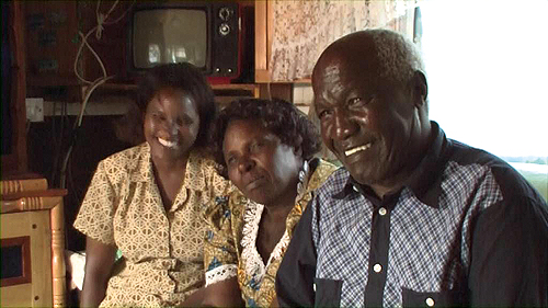 Expedition in die ferne Nähe„Meine ferne Familie“ (Helmut Schulzeck, D 2011)Freiwillig unfreiwillig komisch wirkt Helmut Schulzeck, wenn er im Angesicht der Kinder seiner angeheirateten kenianischen Familie die Ziege zu bändigen versucht, die sein – verspätetes – Brautgeschenk sein wird, aber jetzt nur so störrisch ist wie die ganzen Verhältnisse im fernen Afrika. ![]() Filmplakat zu „Meine ferne Familie“Nach „Du bist mein Afrika – eine schwarz-weiße Liebesgeschichte“ drehte der Kieler Dokumentarfilmer und Wanderer zwischen zwei Welten seinen zweiten Film über „Meine ferne Familie“. 2006 heiratete er Wangechi, seine kenianische Liebe, die er in Südafrika kennengelernt hatte, in Kiel, Deutschland. Ein Akt, der bei Wangechis Familie im fernen Afrika zwar akzeptiert, aber nicht eben begeistert aufgenommen wurde. Denn der „Mzungu“, der weiße Mann aus dem aus deren Sicht nicht minder fernen Europa, ist Wangechis Familie fremd, auch wenn er das dort übliche Brautgeschenk nachträgt, die Ziege. Die ist so störrisch wie zugleich vertraut – wie die „ferne Familie“ in Afrika, die Schulzeck in seinem Film beobachtet und porträtiert. Im Zentrum ihr Patriarch „Papa Wangechi“. Helmut lässt sich beim Besuch nach der Heirat als der filmen (Kamera: Hans Albrecht Lusznat), der er dort ist: ein nicht ganz ernst zu nehmender Schwiegersohn, aber auch der vermeintlich reiche Gewinn der Familie. Wangechis Bruder Paul ist unverhohlen, wenn er seinem Schwager Geld für einen neuen Traktor abpressen will. Allein, das hat Helmut ebenso wenig wie das für Schwiegerpapas Auto, das er ihm nicht kaufen kann, was der Vater der afrikanischen Familie kaum verstehen kann. ![]() Fremd und doch ein wenig vertraut: Papa Wangechi (Still aus dem Film)Schulzecks Expedition in die Fremde zeigt diese Missverständnisse gegenseitiger Vorurteile „on site“ und „in action“. Das hat etwas Berührendes vor allem darin, wenn man sieht, wie die unterschiedlichen und in manchem unvereinbaren Kulturen sich dennoch bemühen, Brücken über Kontinente zu schlagen, weil da schon einmal eine gemeinsame Liebesgeschichte ist. So sehen wir ein beständiges Ringen, besonders in den Gesprächen Helmuts mit seinem kenianischen Schwiegervater, um ein Einverstandenes, das es so nicht geben kann, das sich gleichwohl in viel Humor ergibt. Denn Schulzecks Expedition in die ferne Fremde ist immer auch eine Annäherung, ein – in seinem Ungelingen dennoch gelungener – Versuch sich zu verständigen. ![]() Helmuts afrikanische Familie auf dem trauten Sofa (Still aus dem Film)So hat er auch ein ungemein liebevolles Auge auf die Probleme seiner „fernen Familie“. Woher kommt Rettung für den rotten Traktor? Welche Kuh sollten wir kaufen? Wie kommen wir mit den marodierenden Räubern klar, die uns das Vieh stehlen? Und wie kann man überhaupt (über-) leben in einem Teil Afrikas, der sich gerade erst globalisiert und die – zweifelhaften – Segnungen westlichen Lebensstils erwirbt? Der „schwarze Kontinent“ ist uns Europäern nach wie vor fremd. So braucht es Botschafter wie Schulzeck, die sich darauf einlassen, die auch wagen, sich darin „zum Affen“ machen zu lassen. Denn in Afrika leben selbstbewusste Menschen, die wir als ehemalige Kolonialisten und Ausbeuter vielleicht am besten verstehen, wenn wir uns zu dem machen, zu dem wir sie einst erklärten. Helmuts Expedition in die afrikanische Fremde, die er liebend gewann, ist auch ein Film über die Hoffnung. Die Hoffnung, dass wir Menschen uns über die Grenzen von Ländern und Kontinenten hinweg verstehen können. Weil wir uns lieben. Und diese Liebe der Menschen über alle Grenzen und Fremden macht uns gemeinsam. Nicht zuletzt das zeigt Schulzecks Film in all der Fremde und Ferne eindringlich. (jm) „Meine ferne Familie“, D 2011, 87 Min., Digital Betacam HD (gedreht auf HDV), 16:9, mono. Drehorte im District Laikipia West, Kenia. Regie, Buch und Produktion: Helmut Schulzeck, Kamera: Hans Albrecht Lusznat, Helmut Schulzeck, Schnitt: Caesar Nyumba Lovejoy, Übersetzungen: Wangechi Schulzeck, Helmut Schulzeck, Reinhard Widera, Erzähler: Tom Keller. Gefördert von der Filmwerkstatt Kiel der Filmförderung Hamburg Schleswig-Holstein. Der Film feiert seine Deutschland-Premiere am Dienstag, 25. Oktober 2011, 20.30 Uhr im Kommunalen Kino Kiel (weitere Vorführungen: Mittwoch, 26. Oktober 2011, 20.30 Uhr; Dienstag, 8. November 2011, 18.30 Uhr). |