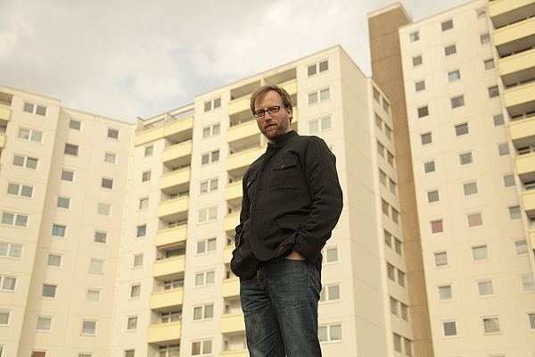 Distanz als Mittel der AnnäherungDer in Mettenhof aufgewachsene Regisseur Christian Mertens arbeitet an einer im Kieler Stadtteil angesiedelten Filmtrilogie„Ich musste weg, um zu wissen wo ich herkomme“, sagt der wahlberliner Regisseur Christian Mertens, der seine ersten filmerischen Schritte beim Kieler Offenen Kanal machte, für seine Projekte mehrfach von der Kulturellen Filmförderung S.-H. und der Filmförderung Hamburg Schleswig-Holstein gefördert wurde und 2007 sein Regiestudium an der Filmhochschule Potsdam-Babelsberg mit Auszeichnung abschloss. Jetzt ist er wieder öfter in Mettenhof, wo er aufwuchs, zu Recherche- und Dreharbeiten für eine Trilogie über den Kieler Stadtteil und seine Menschen. Wie wichtig Mettenhof für seine eigene künstlerische Entwicklung war, erfuhr Mertens bei der Produktion des 50-minütigen Künstlerporträts „Peter Nagel“, das im Herbst/Winter Premiere feiern wird. Ausgangspunkt dafür war ein Deckengemälde Nagels in der Aula des Bildungszentrums Mettenhof (BZM). „Das war gleichermaßen Angst einflößend, fantastisch und imponierend, wie es den Raum aus der Fläche heraus neu schuf“, erinnert sich Mertens an den täglichen Blick nach oben beim Betreten seiner Schule. Vor zwei Jahren wollte er wissen, welche Künstlerpersönlichkeit dahintersteht, nahm Kontakt zu Peter Nagel auf und verfolgte dessen künstlerischen Werdegang – wie auch den eigenen. ![]() „Angst einflößend, aber imponierend“ und Ausgangspunkt für den Film: Peter Nagels Deckengemälde „Klettergerüst“ (1977) im BZM (Foto: Christian Mertens)„Es gibt Ähnlichkeiten zwischen meiner und Nagels Kunstauffassung“, weiß Mertens. „Nagel ermöglicht den ersten Schritt, auf seine Bilder zuzugehen, sehr offen, behält dann aber etwas für sich. Denn was in den Bildern drin steckt, ist nicht was er darüber erzählt, das muss man als Betrachter – wie wohl bei aller Kunst – selbst erfahren.“ Auch Mertens will in seinen Filmen „etwas zurückbehalten, die Tür wird gezeigt, aber sie bleibt zu.“ Solche „Wahrung der Distanz“ sei „das beste Mittel der Annäherung“, und so ist es für Mertens kein Manko, sondern Zeichen des Gelingens, dass „der Film nicht zum Kern von Nagels Werk vorgedrungen ist“. Auch beim Dreh in nur fünf über das letzte Jahr verstreuten Tagen bewahrte sich Mertens diese „Unschuld oder auch Naivität, immer bei Null anzufangen“. Zwar wollte Nagel ihm oft Vorschläge machen und war sehr neugierig, wohin der Film sich entwickelte, „aber ich wollte meine künstlerische Unabhängigkeit und meinen eigenen Blick bewahren, was er dann auch sehr gut verstand“, erzählt der Regisseur über die Begegnung mit dem Maler und dessen Kollegen aus der Anfang der 60er Jahre gegründeten Gruppe ZEBRA. In Opposition zur damals vorherrschenden abstrakten Malerei verschrieb die sich einem „neuen Realismus“, der dennoch tiefgründig symbolisch ist, ohne dies allzu offensichtlich zu machen. Ein Modus, der auch in Mertens’ preisgekrönten Musikvideos (zuletzt: „Unter freiem Himmel“ beim 18. Filmfest Schleswig-Holstein) mitschwingt: „Das Einklinken in die Stimmungswelt eines anderen Kunstwerks, ohne diese zu verraten, sondern ihr Geheimnis zu bewahren.“ Und auch der Modus, mit dem sich Mertens dieser Tage durch seine ehemalige Heimat Mettenhof bewegt, um Figuren und Schauplätze für den zweiten Teil der Mettenhof-Trilogie zu suchen, einen Spielfilm (Stoffentwicklungsförderung von der Filmwerkstatt Kiel) über einen „hochbegabten Jugendlichen in nicht intellektueller Umgebung“, in der zu sich zu finden, einiges Konfliktpotenzial birgt. ![]() „Umarmt von den Hochhäusern Mettenhofs“: Regisseur Christian Mertens am Ort, wo er aufwuchs und sich jetzt für seine Filmtrilogie „von ihm die Geschichten erzählen lässt“ (Foto: Lorenz Müller, Filmwerkstatt Kiel)Autobiografisch? „Schon“, so Mertens, „aber als Regisseur ist es eine Falle, die eigene Biografie zu ernst zu nehmen“, daher allenfalls im Sinne oben zitierter „Annäherung durch Distanz“. Eine Lebens- und Wahrnehmungsform, die man als in Mettenhof Aufgewachsener „mit der Muttermilch eingesogen“ habe: „Interessant wird es, wo die Widerstände sind, am Gegenwind wird man stark“, erinnert sich Mertens – oder doch schon seine Figur? Noch aber bewegt sich Mertens mit der Fotokamera auf Spurensuche durch Mettenhof, um „den Ort die Geschichte erzählen und sich von ihm beschenken zu lassen“. Und führt Recherche-Interviews mit Mettenhofer Jugendlichen unterschiedlichster Herkunft, die er im Nagel-Projekt kennenlernte, mit Polizisten über deren Arbeit an einem so genannten „sozialen Brennpunkt“ – und mit einer Hebamme über die Bedingungen, unter denen Kinder in diese ganz eigene Welt geboren werden. Letzteres ist dann schon gleich Material für den womöglich dritten Film, inspiriert von einem Kieler Stadtteil, dem sich Mertens filmisch umso besser nähern kann, als er dort herkommt, aber auch mal weg gewesen ist. (jm) „Peter Nagel“, D 2014, 52 Min., Farbe, 16:9, HD. Buch, Regie: Christian Mertens, Kamera: Till Vielrose, Ton: Andreas Mohnke, Schnitt: Marc Hofmeister, Musik: Marian Mentrup, Produktion: Beleza Film, Jessica Landt, Falk Nagel, Förderung: Filmwerkstatt Kiel der FFHSH, Kulturstiftung des Landes Schleswig-Holstein. |