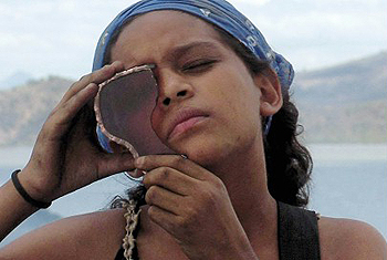 58. Internationale Filmfestspiele Berlin - Berlinale 2008Der Weg zurück, also vorwärts„El camino“ (Ishtar Yasin Gutiérrez, Costa Rica / Frankreich 2008)Durch eine bunte Scherbe, die sie auf dem Müllberg findet, auf dem die zwölfjährige Saslaya (Sherlyn Paola Velásquez), ihr jüngerer und stummer Bruder Dario (Marcos Ulises Jiménez) und beider Großvater nach Verwertbarem für den Lebensunterhalt suchen, sieht Saslaya den Himmel über Nicaragua. Eine Verheißung für ein besseres Leben. Von der Mutter, die ins benachbarte Costa Rica ging um zu arbeiten und ihre Kinder zurückließ, vom Großvater allnächtlich missbraucht, bleibt Saslaya nur die Flucht, die Suche nach ihrer Mutter im fremden Nachbarland.![]() Blick zurück in die Zukunft durch die bunte Scherbe: Sherlyn Paola Velásquez in „El camino“ (Foto: Berlinale)Von ihren Eltern aus eigener Not verlassene Kinder sind in Nicaragua (und wohl nicht nur da in der „Vierten Welt“) an der Tagesordnung. Die Regisseurin Ishtar Yasin Gutiérrez hat für ihren Spielfilm „El camino“ („Der Weg“) jahrelang diese Problematik recherchiert. Nicht zuletzt deshalb wirkt ihr weitgehend dialogfreier Spielfilm sehr dokumentarisch und durchaus auch mit politischer Botschaft. Gleichzeitig lehnt sich Gutiérrez an das Genre des Road-Movies an nur wird hier nicht über Highways gefahren, sondern durch die Slums und den Dschungel gewandert. Vielleicht sogar gepilgert. Das Gedicht „Peregrino“ („Der Pilgerer“) von Rubén Darío (1867-1916), dem lateinamerikanischen Symbolisten, wird im Film immer wieder in Ausschnitten rezitiert. Saslaya ist der darin vorkommende „gekreuzigte Schmetterling“, der die Flügel spreizt, um zu fliehen zurück zur geflohenen Mutter. Dass sie eben diese Mutter nicht findet, ist das Vorwärts für ihr Leben.Eine Reise zum Erwachsenwerden, aus der Illusion, den Kinderträumen, zurück und vorwärts in die Desillusion, ins wahre Leben also. Gutiérrez’ Regieleistung besteht darin, dass sie den verlassenen Kindern dennoch ihre Träume lässt, weil jeder Antrieb, sich der Realität zu stellen, aus einem (Kinder-) Traum resultiert. Oder anders gesagt: Wer nicht mehr träumen kann, macht sich auch nicht auf den Weg. Entsprechend sowohl realistisch dokumentarisch wie surreal verschroben inszeniert Gutiérrez die Flucht der beiden Kinder. Wie Wegweiser begegnen den beiden immer wieder Figuren wie aus dem Märchen: ein Puppenspieler, der sowohl die neue Welt entwirft, wie er sich als der Schatten des missbrauchenden Großvaters erweist. In seiner Entourage eine Frau, eine Art Fee, die Saslayas Mutter ähnelt. Ferner die Mitreisenden auf dem Weg, etwa zwei Männer, die einen Tisch, Symbol der heimischen Häuslichkeit, durch alle Wirrnisse der Flucht tragen, fast wie in einem Monty-Python-Film.Ein Happy End gibt es nicht, eher ein offenes Ende. Saslaya hat auf dem Weg ihren Bruder verloren, das ihr anvertraute (innere, stumme) Kind, ihre eigene Kindheit, aber sie hat die Erwachsenheit, die Fähigkeit sich durchzuschlagen, gewonnen. Wie einst ihre Mutter, deren Flucht sie jetzt besser versteht. Der gekreuzigte Schmetterling, der davon flattert ... zurück und also vorwärts. Ein poetischer Film, der gerade dadurch beeindruckt, wie er poetische Vision und dokumentarisches Abbild einer grausamen, unmenschlichen, dennoch in Mittelamerika alltäglichen Realität verbindet. Eine Vision für das richtige Leben im falschen und somit passend zum Anspruch der Berlinale, das „politischste“ Filmfestival der Welt zu sein. (jm)El camino, Costa Rica / Frankreich 2008, 91 Min., 35mm. Buch, Regie, Produktion: Ishtar Yasin Gutiérrez, Kamera: Jacques Loiseleux, Mauro Herce, Darsteller: Sherlyn Paola Velásquez, Marcos Ulises Jiménez u.a. zurück zum Inhalt |
