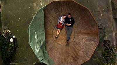 58. Internationale Filmfestspiele Berlin - Berlinale 2008TV-Helden mit Happy End„Die Helden aus der Nachbarschaft“ (Jovan Arsenic, D 2008)Wie macht man aus einem Episodenfilm etwas, wo alle Figuren mit allen Figuren zusammenhängen? Zum Beispiel aus Robert Altmans „Short Cuts“ (1993) wissen wir das eigentlich längst, Jovan Arsenic versucht es allerdings erneut und hat dafür auch gleich ein Konzept parat: Im Mai 2007 gründete er eigens eine Filmfirma namens „Helden Film“, Ziel: „ein neues, unabhängiges, heldenhaftes Kino zu machen.“ „Die Helden aus der Nachbarschaft“ sind die erste Low-Budget-Produktion von „Helden Film“.Das Drehbuch sei „so aus ihm herausgeflossen“, sagt Arsenic, trotz der „sehr konstruierten Geschichte“. Ganz genau, sehr konstruiert aber schön erzählt, nach allen Regeln der Kunst und mit dem ganz und gar unwahrscheinlichen aber was interessiert im Kino Wahrscheinlichkeit? Happy End quer durch die Bank der sechs Protagonisten. Versuchen wir mal, das in wenigen Sätzen nachzuerzählen.Erika (Nina Hoger) ist Moderatorin einer TV-Show namens „Die Helden aus der Nachbarschaft“. Für die hat sie sich die schüchterne und chronisch unbemannte Bäckerin Rosine (wunderbar berlinernd: Eva Löbau) ausgesucht, weil Rosine und ihr Vater einst den größten Pfannkuchen der Welt gebacken haben. Doch Rosine sagt ihr ab, weil sie es „einfach nicht gebacken kriegt“. Da sieht Erika im Nachbarfenster, wie Attila (Marc Zwinz) in ein Glas beißt. Erika vermutet Selbstmordabsicht und eilt zur Hilfe und hat ihren nächten Showgast. Denn Feuerwehrmann Attila ist zwar gerade seine Freundin Sabine (Myriam Schröder) abgehauen, aber das mit dem Gläser Essen ist seine Besonderheit seit Kindertagen. Er hat eine besonders ätzende Magensäure, die ihn selbst Metall verdauen lässt. Perfektes Futter für Erikas TV-Show. In der fleht Attila Sabine an, zurück zu kommen. Sabine indes hat ein Verhältnis mit Erikas Ehemann Ulf (Christopher Buchholz), der übrigens wie Arsenic Psychologe ist. Bei ihm in Behandlung ist Rosine, die sich wiederum in Attila verguckt hat, der, nun wieder Single, ihre Avancen durchaus erwidert ganz großes Kino, wie sich die beiden in der Pfanne für den größten Pfannkuchen aller Zeiten näher kommen.![]() zurück zum Inhalt |