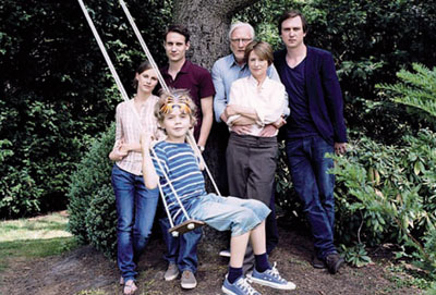 62. Internationale Filmfestspiele Berlin – Berlinale 2012Unvermeidliche Familienbande„Was bleibt“ (Hans-Christian Schmid, D 2012)Eigentlich sollte es ein harmonisches Familienwochenende werden: Der junge, in Berlin lebende Autor Mark (Lars Eidinger) besucht mit seinem 5-jährigen Sohn seine Eltern in einem Kleinstadt-Vorort. Mutter „Gitte“ (Corinna Harfouch) versucht, ihre Depressionen mit homöopathischen Therapien in den Griff zu bekommen. Vater „Günter“ (Ernst Stötzner) hat seinen Verlag verkauft und plant eine längere Recherche-Reise in den Mittleren Osten, um endlich sein eigenes Buch zu schreiben. Markos jüngerer Bruder Jakob (Sebastian Zimmler) führt eine schlecht gehende, aber vom Vater finanzierte Zahnarztpraxis in Fußentfernung vom elterlichen Haus. Die etwas angespannte Idylle platzt, als Gitte verkündet, dass sie bereits seit zwei Monaten nach dreißigjähriger Behandlung ihre Antidepressiva abgesetzt hat. Wie Günter will sie noch mal einen neuen Lebensabschnitt beginnen. Gittes Entscheidung löst Gegenwehr aus, teils aus Sorge um ihre Gesundheit, teils aus Angst, dass ein erneuter Ausbruch alle Beteiligten aus ihrer mittlerweile gewohnheitsmäßigen Fürsorgeposition reißt oder in eine neue hineinzwängt. Über die Jahrzehnte haben sich alle Familienmitglieder in ihren Rollen eingerichtet: Der die Familie versorgende Vater, der pflichtbewusste jüngste Sohn Jakob und Marko, der sich nach Berlin verzogen hat, weil er sein Elternhaus nur noch in kleinen Dosen erträgt. Auf den ersten Blick ist diese Familie eine liberale, emanzipierte. Der Schein trügt: Vater Günter ist bestimmend, meist subtil, teilweise herrisch. Seine – auch finanzielle – Fürsorge ist erdrückend und, wie man später erfährt, auch nicht ohne Eigennutz. Jakob bleibt in der Kleinstadt und lässt sich vom Vater praktisch aushalten, um in der Nähe seiner Mutter zu bleiben, was auch dem Vater entgegenkommt. Die Rücksichtnahme aller auf Gittes Krankheit führt zur Vermeidung und zur Ausblendung jeglicher Konfliktsituationen. Trotz eines scheinbar offenen, antiautoritären Verhältnisses auf Augenhöhe (man spricht sich mit Vornamen an) kann Marko seinen Eltern nicht eingestehen, dass seine eigene Familienbeziehung zerbricht. Wie tief der Abgrund zwischen seinen Eltern inzwischen geworden ist, zeigt sich, als Marko Charles Aznavours „Du lässt Dich gehen“ am Klavier anstimmt und Gitte spontan einstimmt. Ein wenig Familienharmonie vergangener Zeiten blitzt auf, Günter übernimmt die letzte Strophe. Doch Ironie und Ausweglosigkeit der Situation offenbaren sich nach der letzten Note: Womit die Nudeln denn gefüllt seien, will Günter wissen, worauf Gitte ihn bittet, doch vor dem Essen das Hemd zu wechseln. Die Kommunikation ist erstarrt, die Familiensprache hölzern und emotionslos. Das Verständnis für die Lebenssituation der jeweils anderen fehlt, daher lassen sich die eigenen Befindlichkeiten natürlich nur schwer vermitteln. ![]() Angespanntes Familienidyll: Egon Merten (vorn), Picco von Groote, Sebastian Zimmler, Ernst Stötzner, |