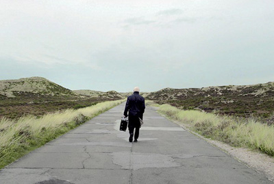 63. Internationale Filmfestspiele Berlin – Berlinale 2013Stillleben Weg„Kalifornia“ (Laura Mahlberg, D 2013)Weit und leer ist das Land zwischen den Dünen irgendwo an der Nordseeküste, über die beständig ein kalter Wind streift. Die Kamera schwenkt auf einen kleinen Wohnwagen nirgendwo in der Einöde. Da wohnt der alte Pavel (Pavel Bobrov). Aber was heißt schon wohnt? Er ist ein Tramp, seine Heimat ist das Dazwischen, nicht der Ort, sondern der Weg, und der ist ebenso weit, wie er ganz nach Innen führt. Seltsam entrückt, fremd und zugleich vertraut mutet dieses Setting an, mit dem Laura Mahlberg, bis 2012 Filmstudentin an der Merz Akademie Stuttgart, ihren nach „Der Partisan“ (2009) und „Gelb“ (2010) dritten Kurzfilm beginnen lässt. Er begleitet ihren Protagonisten Pavel auf einer Reise, die vorderhand zu seinem Freund Jack nach „Kalifornia“, aber eigentlich aus dem Nirgendwo ins Nirgendwo führt, denn am Ende kommt Pavel dort wieder an, wo er losgetippelt ist: bei sich und seinem Fernweh. ![]() Go West auf dem Weg in die stille Leere – Pavel (Pavel Bobrov) macht sich auf nach „Kalifornia“ (Foto: Laura Mahlberg)„Kalifornia“ ist eine Odyssee, eine Art Road-Movie, welches das Genre konterkariert, ja komisch bricht. Denn auf seinem Weg nach Westen, der bekanntlich weit ist, begegnen ihm Gestalten, die allesamt symbolisch und zugleich komisch verschroben erscheinen. Da ist der Motorrollerfahrer, dessen Motorroller nicht fahren will, die Tankwärtin, die weder Benzin noch Kaffee verkaufen mag, zwei Lebemänner, die in einer Sushi-Bar dem sinnlosen, aber hippen Müßiggang frönen, oder die Kellnerin, die Pavel wortlos einen Aussichtspunkt mit Blick in den weiten Stadthorizont weist – vielleicht eine Sirene für den ziellosen Odysseus ...? Nicht nur hier herrscht überall eine eigentümliche Leere, führen die Wege nirgendwo hin, bleiben Haltestellen, an denen Pavel auf die Weiterfahrt wartet, in langen Einstellungen wahre Stillleben. Nicht der Weg ist hier das Ziel, sondern das Ziel der Weg, den zu Beschreiten sinnlos erscheint, weil er nirgendwo hin, geschweige weg führt. Ein Stillstand, der sich – insofern ganz „unfilmisch“ – auch im ruhigen Tempo des Films spiegelt, dessen Einstellungen (Kamera: Tony Kranz) sich immer wieder in den präriehaften Weiten der Dünenlandschaften oder der endlosen Verwinkelungen nächtlicher, menschenleerer Städte geradezu festsaugen. Es geht nicht voran, das gelobte Land jenseits des Horizonts, das schon im eintönigen Freizeichen des Telefons, mit dem Pavel seinen entfernten Freund anruft (aber nicht erreicht), so gleichförmig säuselt wie der Wind durchs Dünengras, bleibt unerreichbar. Der Tramp kommt nirgends an. Nirgends? Doch – gerade dort, wo er schon war, am Ziel, von dem er ausging: bei sich. Und vielleicht ist das der Weg dieses Ziels, dieser beinahe buddhistischen Reise des sich aufmachenden Angekommenseins im Nichts, das Ich geheißen wird und ein weites, leeres Land ist. (jm) „Kalifornia“, D 2013, 27 Min., QuickTime ProRes. Regie, Buch: Laura Mahlberg, Kamera: Tony Kranz, Schnitt: Anton Wezel, Darsteller: Pavel Bobrov, Elvira Köhler, Anselm Breier, Barbara Kosariszuk u.a. |
