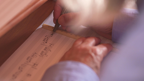 23. Filmfest SH 2019Der Komponist als Spieler„To B or to B flat – The Composer Boudewijn Buckinx“ (D 2019, Viola Rusche und Hauke Harder)„Warum ist meine Musik so einfach? — Warum ist meine Musik so komplex?“, fragt sich und uns Zuschauer der belgische Komponist Boudewijn Buckinx (geb. 1945) scheinbar widersprüchlich und gibt darauf immer wieder neue, durchaus philosophische und nicht weniger (scheinbar) widersprüchliche Antworten. Die aus Schleswig-Holstein stammenden Berliner Filmemacher*innen Viola Rusche („Amor Vati“, 2008) und Hauke Harder porträtieren Buckinx entlang dieses roten (Selbst-) Befragungsfadens in ihrem Film-Essay „To B or to B flat – The Composer Boudewijn Buckinx“, der beim 23. Filmfest SH seine Premiere feiert. Nach „No Ideas but in Things – The Composer Alvin Lucier“ (2012), „Zeile für Zeile“ – Ein Film über den Komponisten Ernstalbrecht Stiebler“ (2014) und „A Shape of Time – The Composer Jo Kondo“ (2016) ist dies bereits das vierte Porträt von Person und Werk eines zeitgenössischen Komponisten. Das Quartett verbindet Hauke Harder (selbst Komponist und experimenteller Klangkünstler), der in den 1990er Jahren mit seiner „Gesellschaft für akustische Lebenshilfe“ Werke aller vier Komponisten in Kiel präsentierte. Einen Ausschnitt aus Buckinx’ gleichsam „Schlüsselwerk“ „1001 Sonatas für Geige und Klavier“ (BBWV 1988.09) brachte Harder 1991, drei Jahre nach der Uraufführung in Darmstadt, in den Orchesterprobenraum des Kieler Opernhauses und war damit an der vordersten Front zeitgenössicher Musik. 1998 organisierte Harder eine mehrtägige Gesamtaufführung der „1001 Sonatas“ (Gesamtlänge: ca. 20 Stunden) an mehreren Orten in Kiel (vgl. KN-Bericht von Jörg Meyer (1998) im Anhang). ![]() Boudewijn Buckinx im spanischen Sommer (Filmstill (c) Viola Rusche und Hauke Harder)Während die drei anderen, vorher porträtierten Komponisten mit ihren eigenwilligen Kompositionsverfahren unter dem Rubrum „Avantgarde“ subsummiert werden könnten, steht Buckinx dazu in gewisser Weise quer. Er selbst sagt im Film sinngemäß: „Avantgardisten stellen Leitern an Bäume, um die Äpfel zu pflücken, ich sitze unter dem Baum und warte, was herunterfällt.“ (Isaac Newton lässt grüßen ;-) Buckinx’ Werk, für das er so ganz disparate Einflussgeber wie Mozart (Tradition), Satie (Transformation/Befreiung der klassischen Tonalität) und Cage (der ironische Spieler mit Form und Musik-/Konzertbetrieb) nennt, könnte man als „postmodern“ bezeichnen – in dem Sinne, das viel „im Stile von ...“ ist, aber ganz neu arrangiert und addiert, wenn nicht subtrahiert oder sogar dividiert. Auch die Postmoderne, philosophisch zeitgeistiges Paradigma des Jahrtausendwechsels, ist gut 20 Jahre danach schon „historisch“, denn die Kunstepochen wechseln mittlerweile nicht mehr im Zwei-Jahrhundert-, sondern Jahrzehntewechsel. Ein Tempo, dem Buckinx nachdenkliche Langsamkeit entgegensetzt. Was ihn zum „Postmodernen“ macht, ist vor allem das Spielerische, das im Film deutlich wird. ![]() Spielt mit Tradition, Avantgarde und Postmoderne: Boudewijn Buckinx (Filmstill (c) Viola Rusche und Hauke Harder)Neben den Fragen nach Einfachheit versus Komplexität (z.B. Zahlensymbolik wie in Barock und Kaballa) bilden auch die „1001 Sonatas“ einen festen Faden, an dem sich der Film trotz seiner lockeren Gebundenheit entlanghangelt. Buckinx’ Gestaltungsprinzip in den „1001 Sonatas“ nimmt die uralte Form der Variation wieder auf, bricht sie zugleich, das postmoderne Diktum, dass alles mit allem zusammenhängt, konterkarierend, indem jede Sonata Eigensinn reklamiert. Die den Film durchziehenden „1001 Sonatas“ sind somit auch eine Art Zeitgemälde unserer Epoche, wo alles, die gesamte Geschichte (und Geschichten, aka „Narrative“) überall und immer als bloßes Material verfügbar sind. Und wo Gegensätze wenn nicht verschmelzen, so doch ineinander fließen – man könnte das Dialektik nennen, was aber auch ein sehr „oldschool“-Begriff ist. Wie der Filmtitel (Buckinx entlehnt), der Shakespeares Hamlet genauso assoziert wie den Dur-Moll-Wechsel, Gestaltungsprinzip vieler seiner Kompositionen. Und wie werden diese Paradigma der Moderne/Postmoderne filmisch umgesetzt? Die Regisseur*innen und ihr Kameramann Johannes Imdahl finden dafür wundervoll gegen- und abständige und zugleich nahe Bilder: Romantische Landschaftsbilder wie in C. D. Friedrich-Gemälden, beiläufige Großstadtszenen und – ganz klassisch – eigens neue Aufnahmen der „1001 Sonatas“. So schwebt eine Baggerschaufel über einer Gracht, hebt und senkt sich, gleichsam unambitioniert ihr Ziel suchend (zu den Klängen einer der neun absichtlich unvollendeten Symphonien Buckinx’ – auch so einer seiner ironischen Coups). Buckinx selbst antwortet auf die selbst gestellte Fragen nach Einfachheit vs. Komplexität in einem „White Room“, Hörsaal einer Universität vor weißem (bewusst farbneutralen) Hintergrund, gleichsam im Elysium. Oder ganz alltäglich vor einem Fritten-Stand – weil sein Großvater ihm riet: „Junge, sieh zu, dass du bei allem was du machst, immer Fritten essen kannst.“ ![]() Composing on scene – Boudewijn Buckinx schreibt die letzten Takte der Musik für den Abspann des Films (Filmstill (c) Viola Rusche und Hauke Harder)Buckinx’ Werk, das vielschichtig zwischen traditionsverhaftetem Ernst und mit der Moderne spielender Ironie changiert, wird so treffend bebildert. Ein wechselseitiges Einverständnis zwischen seiner Musik und den Bildern der Filmemacher*innen. Ein Film wie die in ihm verständlich gemachte Musik im steten Wechsel zwischen „to B“ und „to B flat“. (jm) „To B or to B flat – The Composer Boudewijn Buckinx“, D 2019, 88 Min. Drehbuch/Regie: Viola Rusche, Hauke Harder; Kamera: Johannes Imdahl; Schnitt: Viola Rusche; Ton: Hauke Harder; Förderung: Filmwerkstatt Kiel der FFHSH, Kulturelle Filmför