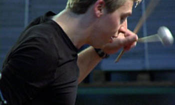 50. Nordische Filmtage LübeckBotschaft Musik„Drums United“ (Marcus Richardt, Dario Aguirre, D 2008) Martin Grubinger ist ein Missionar, die Musik seine Botschaft, und Rhythmen sind seine Psalme. Mit seinem Credo beginnt die Kurz-Dokumentation „Drums United“: Musik verändere nicht nur das soziale Verhalten zum Besseren und helfe bei der Überwindung kultureller Grenzen, sie wirke sich auch positiv auf Konzentration, Stimmung und Produktivität aus. Der österreichische Multipercussionist Martin Grubinger war 2008 Gast des Schleswig-Holstein Musikfestivals und veranstaltete im Rahmen des „Workshops der Kulturen“ einen Schlagzeug-Workshop mit vorwiegend Jugendlichen. „Drums United“ von Marcus Richter und Dario Aguirre dokumentiert den dreitägigen Workshop an der Lübecker Musikhochschule von den ersten ungelenken Übungen bis zum begeistert aufgenommenen Abschlusskonzert. ![]() Trommler für Integration: Martin Grubinger in „Drums United“ (Foto: NFL)Grubingers Glaubensbekenntnis ist sicher kaum strittig, doch der junge Musiker trägt sie mit vitaler Überzeugung und einem Elan vor, als gelte es, die Welt mit Trommelschlägen zu retten. Tatsächlich treten Grubinger und sein Team von internationalen Percussionisten den Beweis auch prompt an. Die bewusst in Hinsicht auf Alter, Vorbildung und sozialen Hintergrund bunt zusammengestellte Schar von Teilnehmern wird in afrikanische, lateinamerikanische und afro-kubanische Rhythmen eingewiesen. Sprachbarrieren zwischen Lehrern und Schülern lassen sich spielend umgehen, denn Musik ist als Sprache universell. Schnell wird ein gemeinsamer „Groove“ gefunden. Grubinger glaubt, durch diese Begegnung der Kulturen auch aktiv gegen ethische Vorurteile arbeiten zu können, und die offensichtliche Freude am gemeinsamen Arbeiten gibt ihm Recht. Richardt und Aguirre erfüllten mit „Drums United“ eine Auftragsarbeit des SH-Musikfestivals unter schwierigen Bedingungen. Mit kleinstem Budget und nur sich selbst als Kameraleuten und Interviewern entstand ein geradliniger, kurzweiliger Bericht über ein besonderes musikalisches Experiment. „Drums United“ gelingt es aber auch, die grenzüberschreitende und verbindende emotionale Kraft der Musik sichtbar zu machen und damit Grubingers Thesen zu untermauern. Wenn am Ende des Workshops und nach dem beklatschten Abschlusskonzert der Abschied von einander schwer fällt, kann man das als Zuschauer von „Drums United“ nachfühlen. (dakro) „Drums United“, D 2008, 38 Min., DigiBeta, Buch,Kamera, Regie: Marcus Richardt, Dario Aguirre, Schnitt: Dario Aguirre,Produktion: Stephanie Tonn, Stiftung Schleswig-Holstein Musikfestival |
